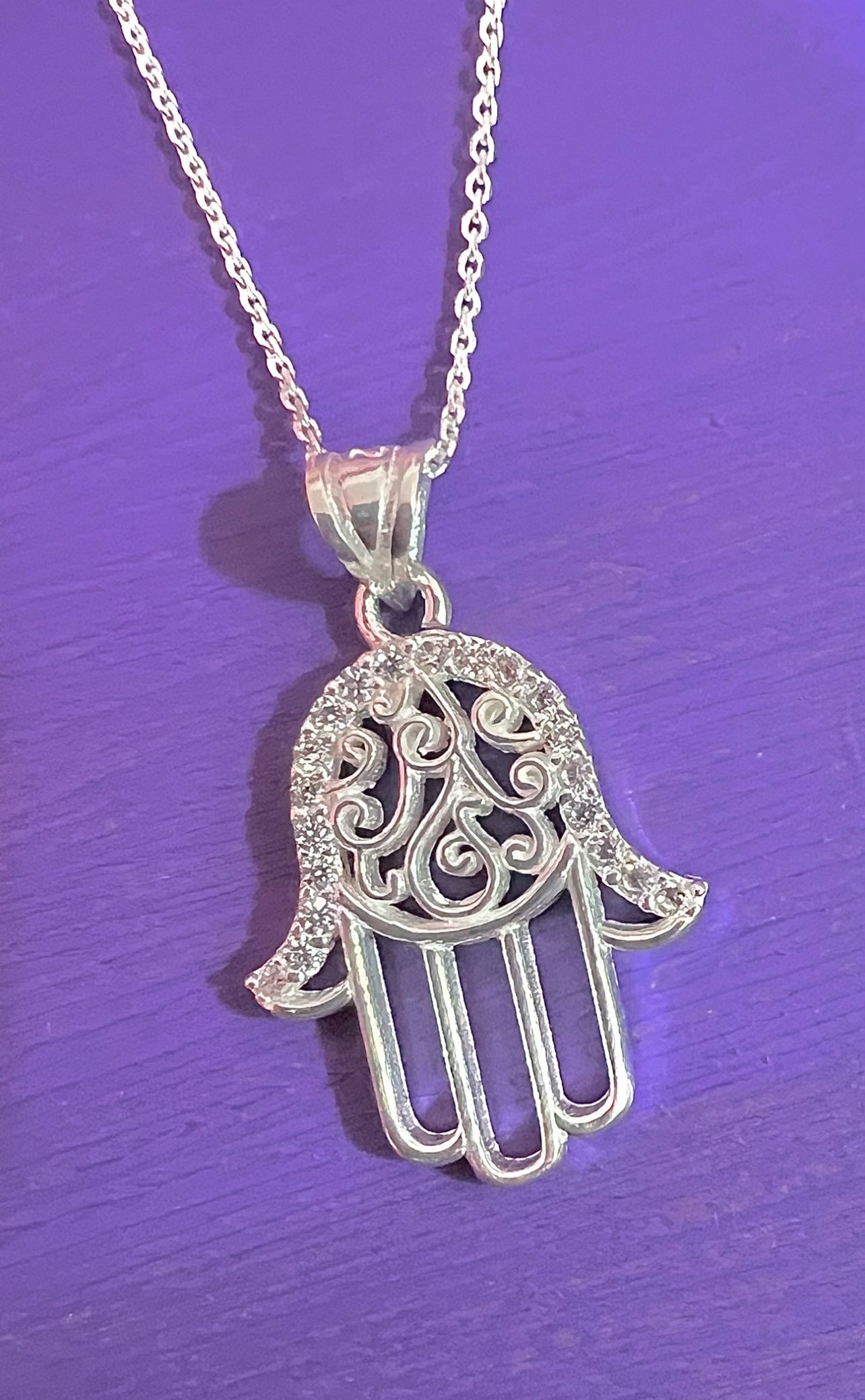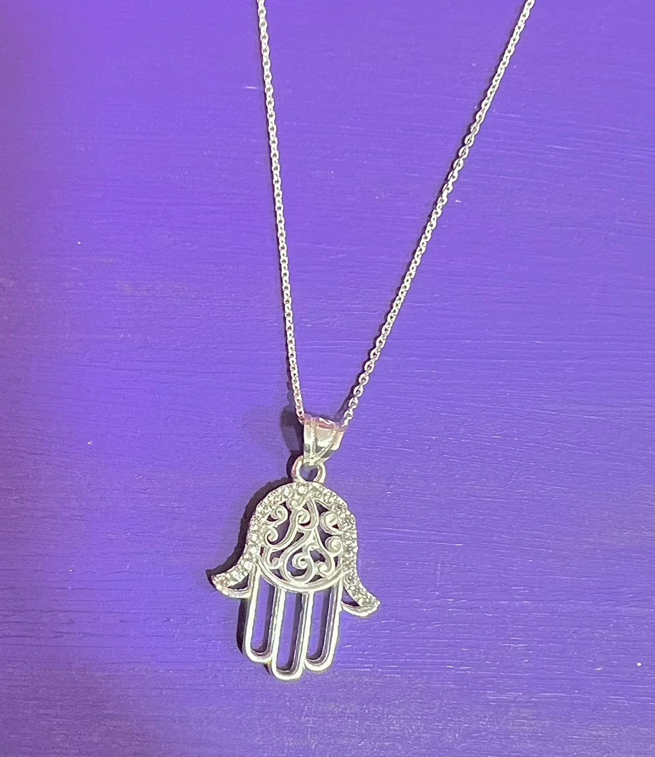 Colgante mano de Fátima en plata de ley y circonitas